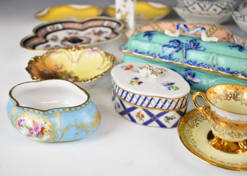 Collection of 19th/20thC mainly continental porcelain including Paris, Limoges etc, tallest 14cm