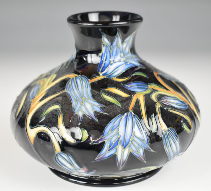 Sian Leeper for Moorcroft limited edition 31/250 squat pedestal vase, signed and dated 2002 and with '20 years Weavers Sisson Gallery' backstamp to base, with box