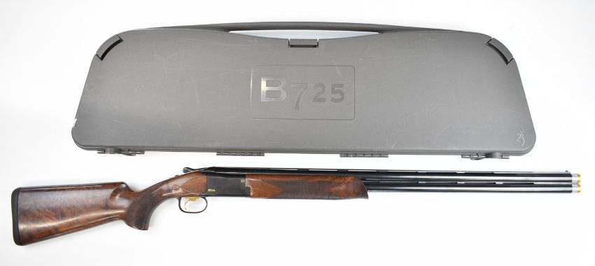 Browning B725 Sporter S3 Black Edition 12 bore over and under ejector shotgun with named and engraved action and underside, monogrammed trigger guard and thumb lever, chequered semi-pistol grip and forend, carved teardrop to the wrist, adjustable single trigger, vented top and central ribs and 30 inch multi-choke barrels, overall length 123cm, length of pull 39cm, serial number 59086ZX, in original fitted carry case with three additional chokes, choke key and triggers. PLEASE NOTE THAT A VALID RELEVANT SHOTGUN CERTIFICATE IS REQUIRED TO VIEW OR PURCHASE THIS LOT AND FOR ALL SHOTGUNS OR RIFLES. PLEASE ENSURE YOU HAVE THE RELEVANT CERTIFICATE BEFORE BIDDING.