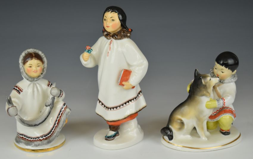 Three Lomonosov / USSR Inuit figures, tallest 20cm