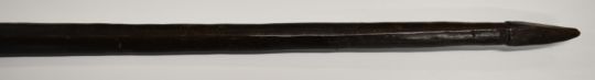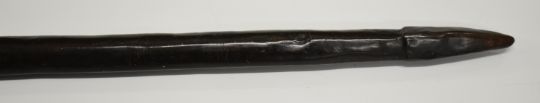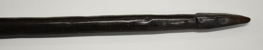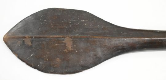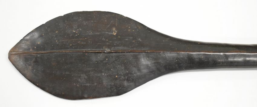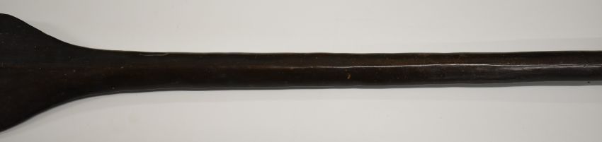 19thC Solomon Islands carved tribal paddle club with central raised spine, tapering handle and stepped terminal, length 115cm