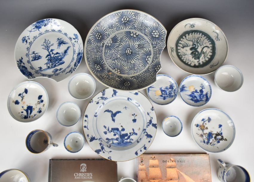 Large collection of 18thC Chinese shipwreck porcelain from Nanking Cargo and The Diana, with two books / catalogues and a Christie's poster advertising the 1995 Diana sale in Amsterdam