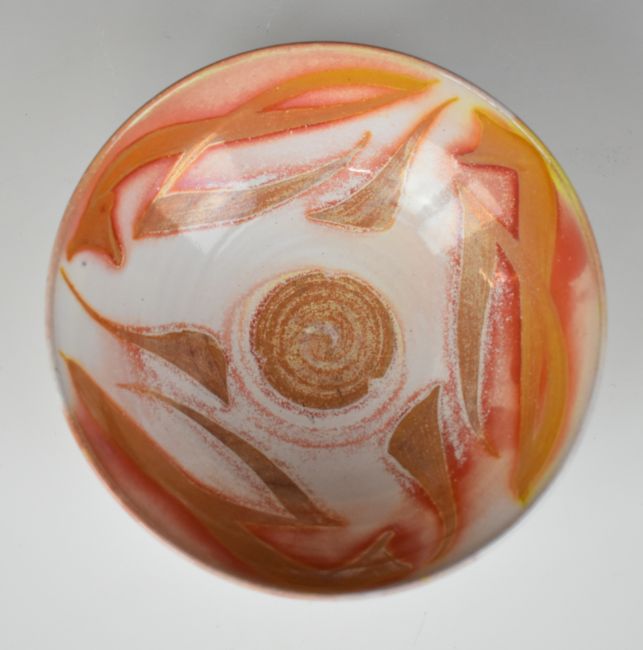 Alan Caiger Smith (1930-2020) studio pottery bowl with swirling abstract decoration, diameter 17 x height 5.5cm