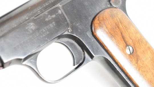 Deactivated Browning M1900 .32 semi-automatic pistol with wooden grips, frame stamped 'Browning's Patent Brevette S.G.D.G' and 4 inch barrel stamped 'Fabroque Nationale Herstal Liege (Browning's Patent), serial number 691498, with deactivation certificate dated 27/01/2026.
