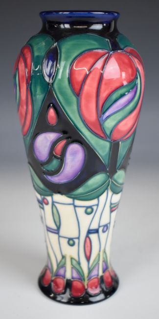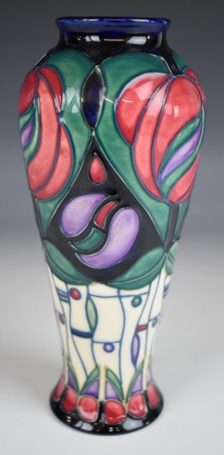 Moorcroft baluster vase decorated in the 'Tribute to Charles Rennie Mackintosh' patter, dated 95 to base, H20.5cm