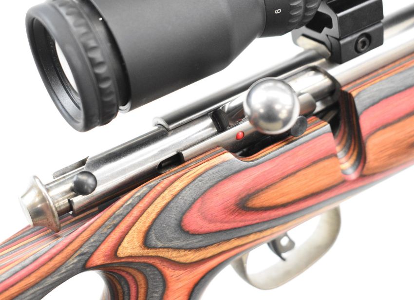 Savage Mark II .22 bolt action rifle with laminate show wood skeleton stock, raised cheek piece, multi-shot magazine, Hawke Sport HD 3-9x40 Rimfire scope, sound moderator and 26.5 inch barrel, overall length 115.5cm, serial number 1677492. PLEASE NOTE THAT A VALID RELEVANT FIREARMS CERTIFICATE IS REQUIRED TO VIEW OR PURCHASE THIS LOT AND FOR ALL SHOTGUNS OR RIFLES PLEASE ENSURE YOU HAVE THE RELEVANT CERTIFICATE BEFORE BIDDING.