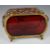 Cranberry glass twin handled casket with hinged domed lid, brass mounts and enamelled decoration, W19 x D12 x H14cm