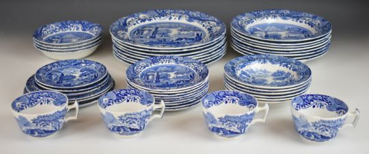 Spode dinner, tea and coffee ware decorated in the Blue Italian pattern, approximately 85 pieces