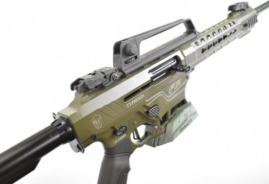 Typhoon Defense Industries F12 12 bore semi-automatic assault style FAC shotgun with textured pistol grip, tactical stock, multi-shot magazine, adjustable sights, flash suppressor and 24 inch barrel, serial number 17-T10002. PLEASE NOTE THAT A VALID RELEVANT FIREARMS CERTIFICATE IS REQUIRED TO VIEW OR PURCHASE THIS LOT AND FOR ALL SHOTGUNS OR RIFLES. PLEASE ENSURE YOU HAVE THE RELEVANT CERTIFICATE BEFORE BIDDING.