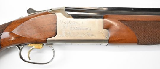 Browning 325 12 bore over and under ejector shotgun with named and engraved action and underside, engraved trigger guard and thumb lever, chequered semi-pistol grip and forend, adjustable single trigger, vented top rib and 30 inch multi-choke barrels, overall length 121cm, length of pull 38cm, serial number 59234PN. PLEASE NOTE THAT A VALID RELEVANT SHOTGUN CERTIFICATE IS REQUIRED TO VIEW OR PURCHASE THIS LOT AND FOR ALL SHOTGUNS OR RIFLES PLEASE ENSURE YOU HAVE THE RELEVANT CERTIFICATE BEFORE BIDDING.