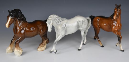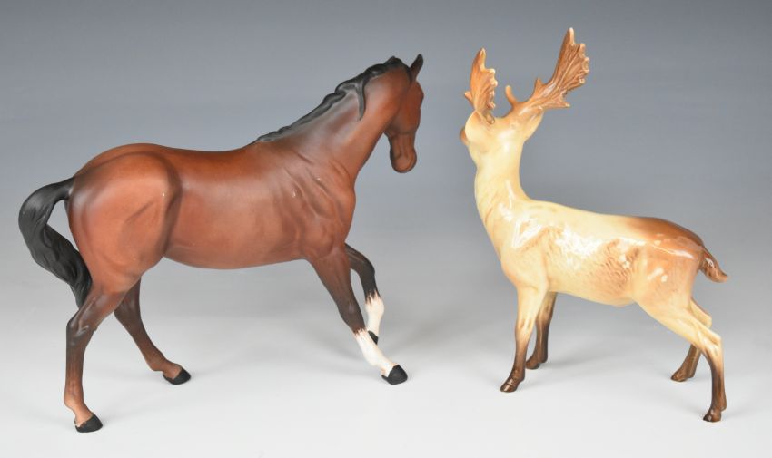 Collection of Beswick horses and wild animals, tallest 21cm, and a Royal Worcester horse bust of Pyroeis