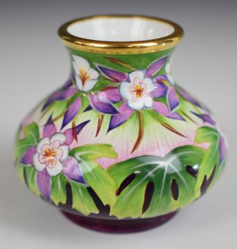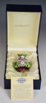Moorcroft enamels pedestal vase decorated with flowers, H5cm, boxed
