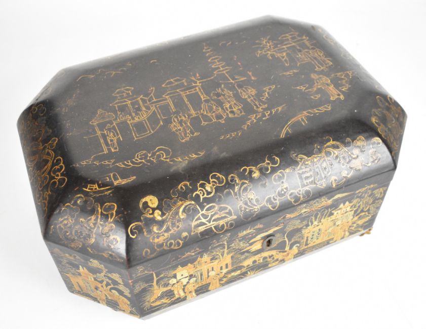 Chinese lacquer workbox and a Japanese three drawer jewellery cabinet, largest W32cm