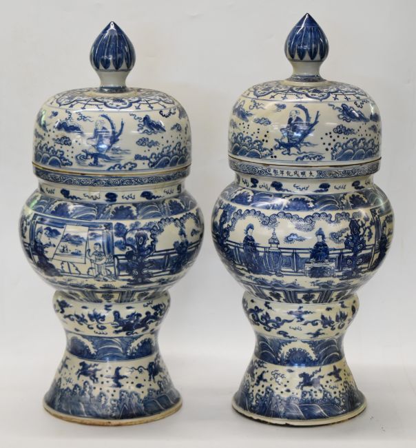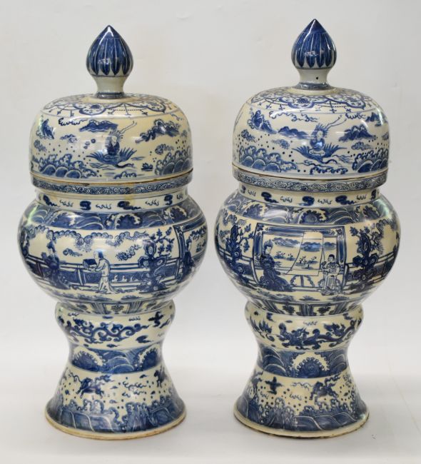 Pair of Chinese blue and white covered floor vases, H70cm