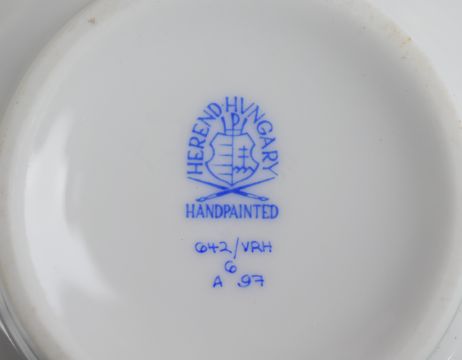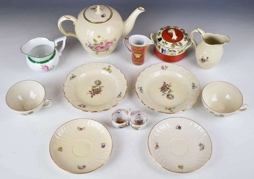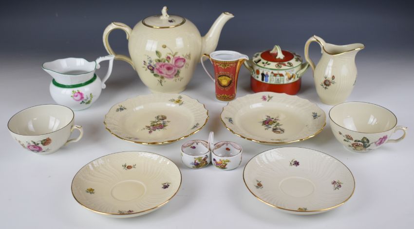 Copenhagen tea ware in the Frijsenborg pattern, Herend jug, Versace jug (no lid), Norwegian preserve pot and a Meissen twin salt