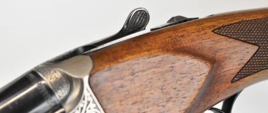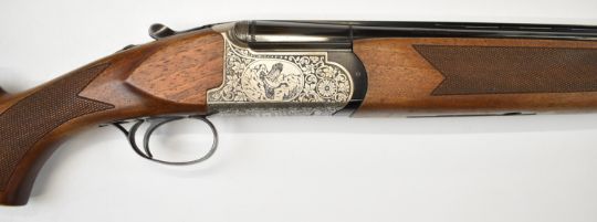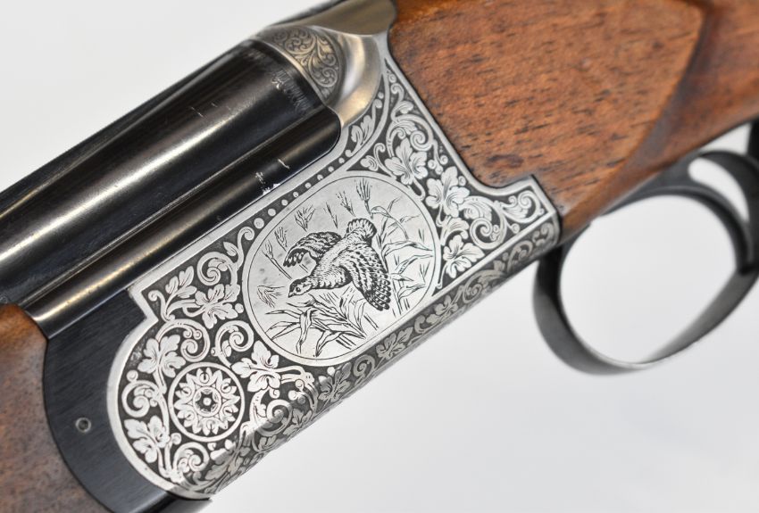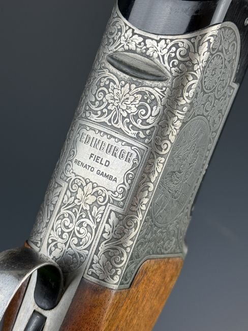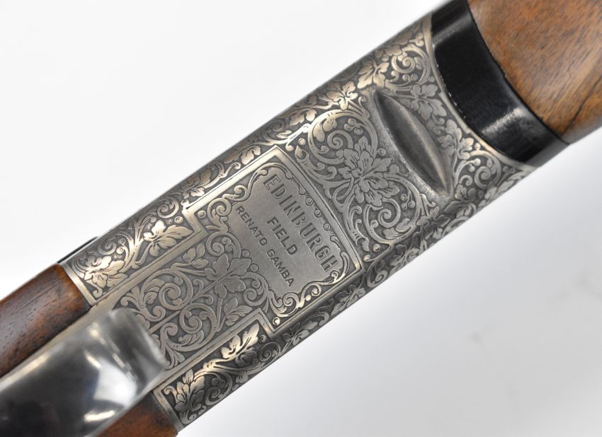 Renato Gamba Edinburgh Field 12 bore over and under ejector shotgun with engraved scenes of birds to the action engraved named underside and thumb lever, chequered semi-pistol grip and forend, single trigger, vented top rib and 28 inch barrels choked ½ and full, overall length 115cm, length of pull 36.5cm, serial number G000877. PLEASE NOTE THAT A VALID RELEVANT SHOTGUN CERTIFICATE IS REQUIRED TO VIEW OR PURCHASE THIS LOT AND FOR ALL SHOTGUNS OR RIFLES PLEASE ENSURE YOU HAVE THE RELEVANT CERTIFICATE BEFORE BIDDING.ld