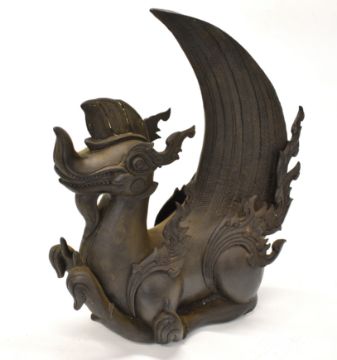 Two Chinese bronze figures comprising a bird and a mythological dragon, tallest 39cm
