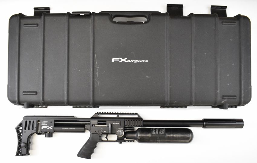 FX Impact X Power Plenum Mk.II .22 PCP FAC air rifle with textured pistol grip, composite stock, three 30-shot magazines, scope rail and sound moderator, serial number 0112629, in original case with instruction manual and accessories.  PLEASE NOTE THAT A VALID RELEVANT FIREARMS CERTIFICATE IS REQUIRED TO VIEW OR PURCHASE THIS LOT AND FOR ALL SHOTGUNS OR RIFLES. PLEASE ENSURE YOU HAVE THE RELEVANT CERTIFICATE BEFORE BIDDING.