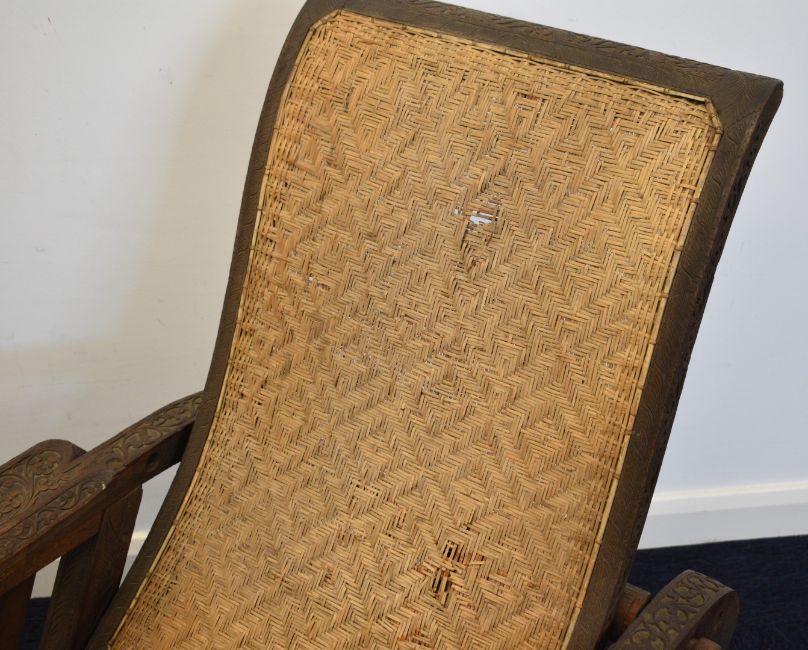 Anglo Indian carved hardwood rush seated chair, H90cm
