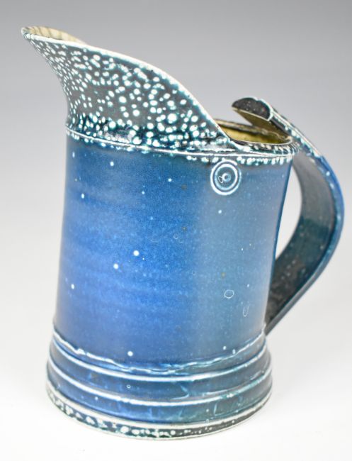 Walter Keeler (b1942) studio pottery jug with mottled blue glaze, H16.5cm