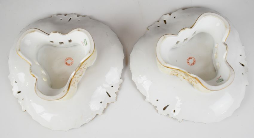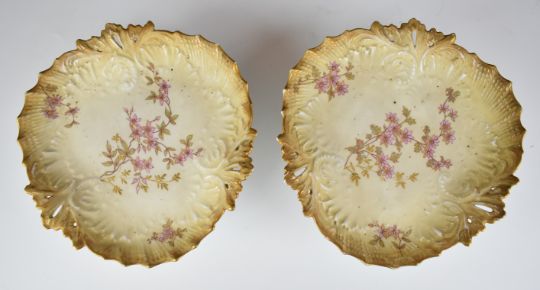 Royal Worcester aesthetic period twin handled vase, Royal Doulton, Limoges, Turncliffe blush ivory dishes and tazzas and a majolica teapot, tallest 21cm