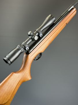 Webley Stingray .177 air rifle with semi-pistol grip, raised cheek piece, adjustable trigger, sound moderator and Bushnell scope, serial number 892145. IF YOU REQUIRE POSTAGE THEN PLEASE NOTE THAT ALL POST-1939 AIR WEAPONS CAN ONLY BE SENT TO A REGISTERED FIREARMS DEALER AND NOT TO A HOME ADDRESS.