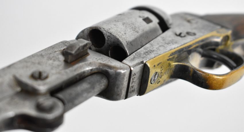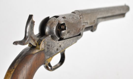 Colt .31 five-shot single action percussion revolver with brass trigger guard, wooden grips and 6 inch octagonal barrel, overall length 29cm, serial number 62955.