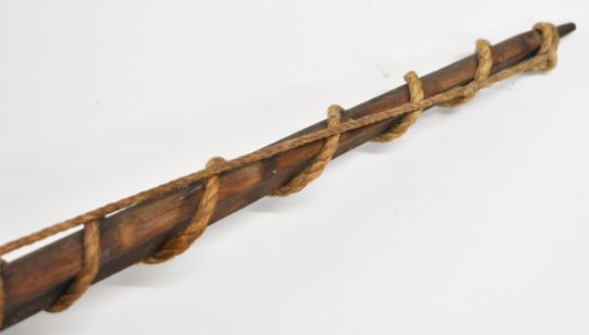 A hardwood longbow of unknown origin, of triangular cross section form and concave belly / face, L239cm