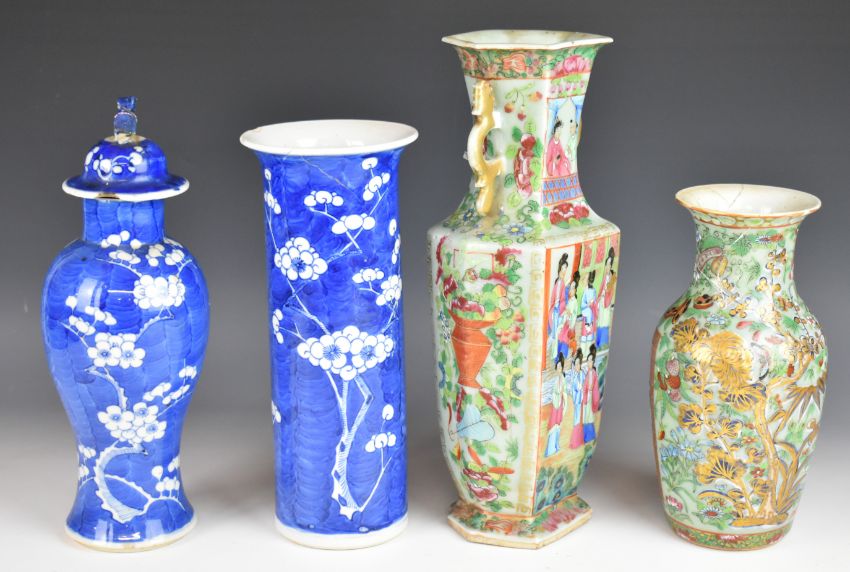 Collection of mainly 19thC Chinese vases and one teapot for restoration, tallest 33cm