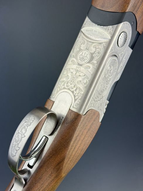 Beretta 691 12 bore over and under ejector shotgun with named and engraved action and underside, engraved trigger guard, thumb lever and fences, chequered semi-pistol grip and forend, single trigger, vented top rib and 30 inch multi-choke barrels, overall length 121cm, length of pull 37.5cm, serial number U95783S, in original fitted case with three additional chokes, choke key, accessories and related paperwork. PLEASE NOTE THAT A VALID RELEVANT SHOTGUN CERTIFICATE IS REQUIRED TO VIEW OR PURCHASE THIS LOT AND FOR ALL SHOTGUNS OR RIFLES PLEASE ENSURE YOU HAVE THE RELEVANT CERTIFICATE BEFORE BIDDING