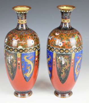 Pair of Chinese pedestal cloisonné vases, H25cm