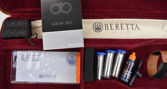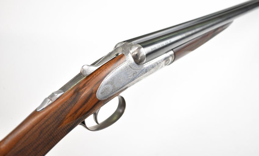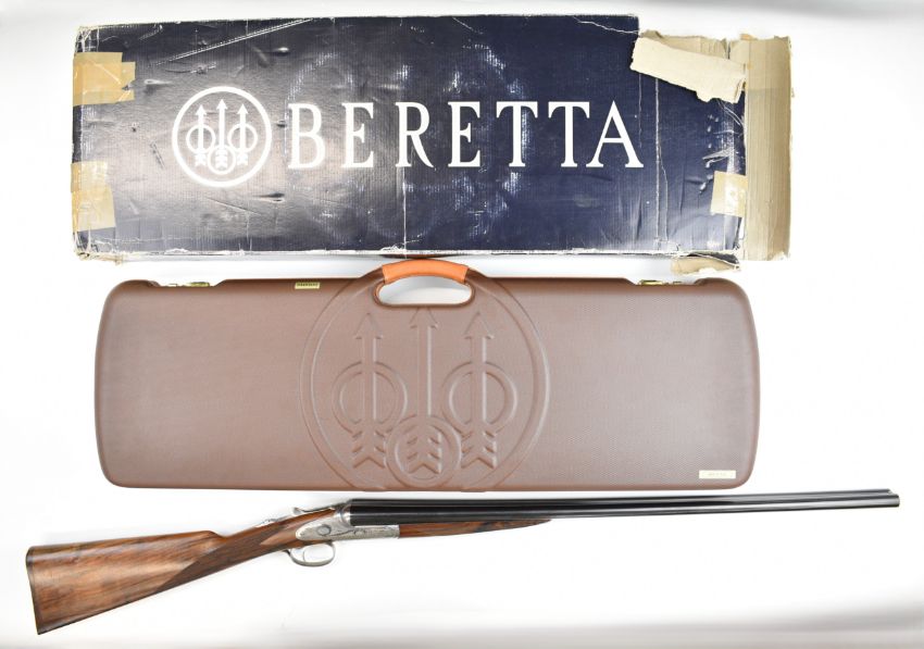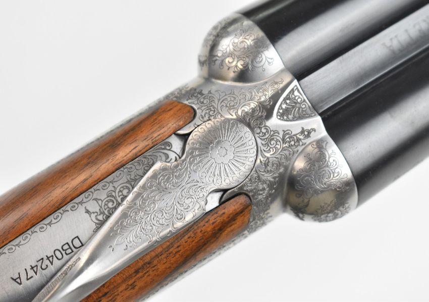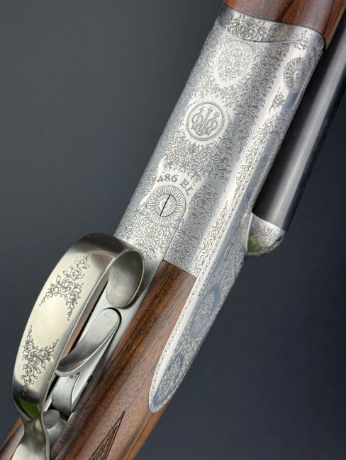 Beretta 486 EL 20 bore round body side by side ejector shotgun with named and engraved sidelock plates, engraved underside, trigger guard, top plate thumb lever and fences, chequered grip and forend, single trigger and 28 inch multi-choke barrels, overall length 115cm, length of pull 37cm, serial number DB04247A, in original case with accessories, three additional chokes, dust bags, related paperwork and outer box. PLEASE NOTE THAT A VALID RELEVANT SHOTGUN CERTIFICATE IS REQUIRED TO VIEW OR PURCHASE THIS LOT AND FOR ALL SHOTGUNS OR RIFLES PLEASE ENSURE YOU HAVE THE RELEVANT CERTIFICATE BEFORE BIDDING.