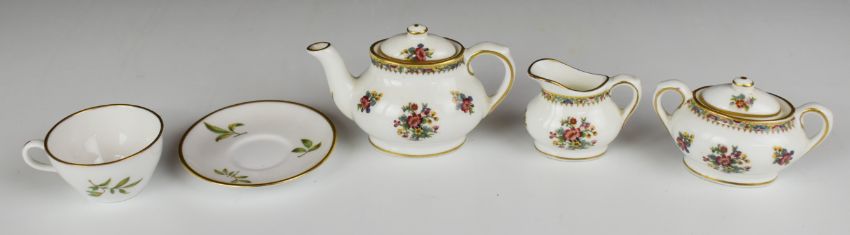 Miniature Wedgwood Jasperware, Coalport tea ware and a Japanese cup and saucer, tallest 6.5cm