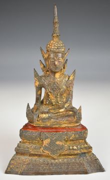 Four bronze / carved wood Buddha /deities, tallest 34cm