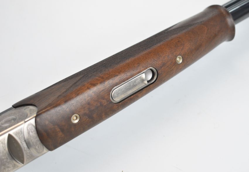 Beretta 686 Silver Pigeon I 20 bore over and under ejector shotgun with named and engraved action and underside, engraved trigger guard and thumb lever, chequered semi-pistol grip and forend, single trigger, vented top rib and 29.5 inch multi-choke barrels, overall length 119.5cm, length of pull 37cm, serial number U10725S, in original fitted case with three additional chokes, choke key etc. PLEASE NOTE THAT A VALID RELEVANT SHOTGUN CERTIFICATE IS REQUIRED TO VIEW OR PURCHASE THIS LOT AND FOR ALL SHOTGUNS OR RIFLES PLEASE ENSURE YOU HAVE THE RELEVANT CERTIFICATE BEFORE BIDDING.