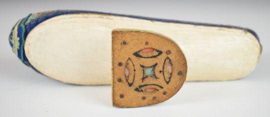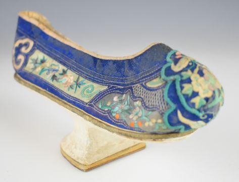 Pair of late 19th/20thC Chinese shoes with embroidered decoration, L20cm