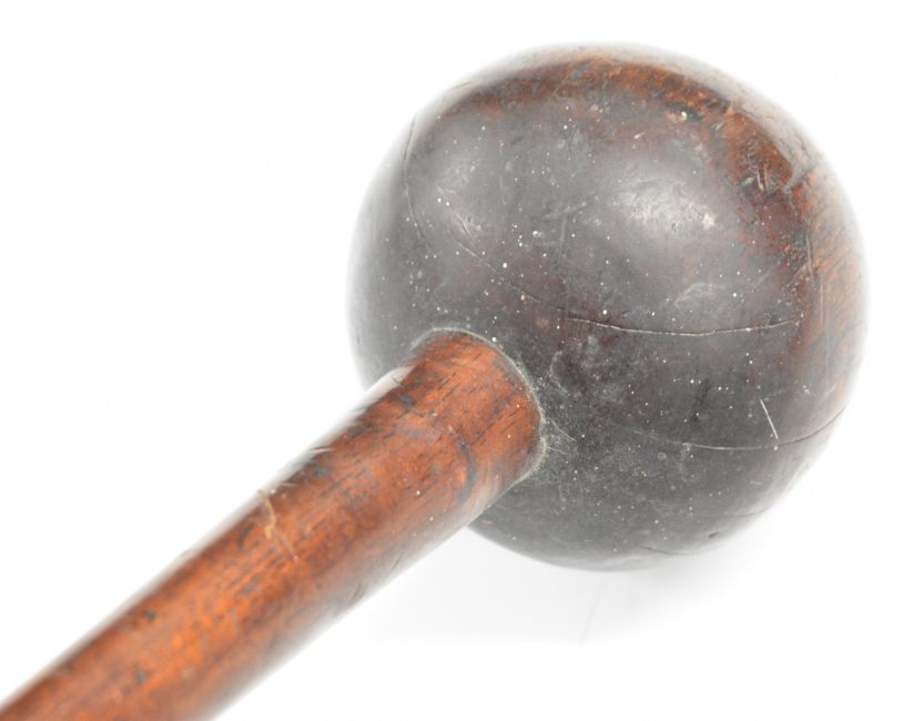 19thC African tribal hardwood knobkerrie and an Austral Islands ceremonial paddle / club, 62cm and 170cm