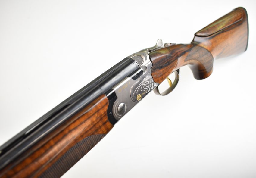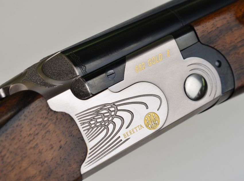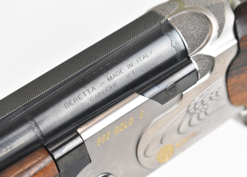 Beretta 682 Gold E 12 bore over and under ejector shotgun with gold inlaid naming, chequered semi-pistol grip and forend, adjustable comb, vented top and central ribs, adjustable single trigger and named 32 inch multi-choke barrels, overall length 128cm, length of pull 38.5cm, serial number R86983S, in original fitted case with three additional chokes, choke key, accessories and owner's manual. PLEASE NOTE THAT A VALID RELEVANT SHOTGUN CERTIFICATE IS REQUIRED TO VIEW OR PURCHASE THIS LOT AND FOR ALL SHOTGUNS OR RIFLES PLEASE ENSURE YOU HAVE THE RELEVANT CERTIFICATE BEFORE BIDDING