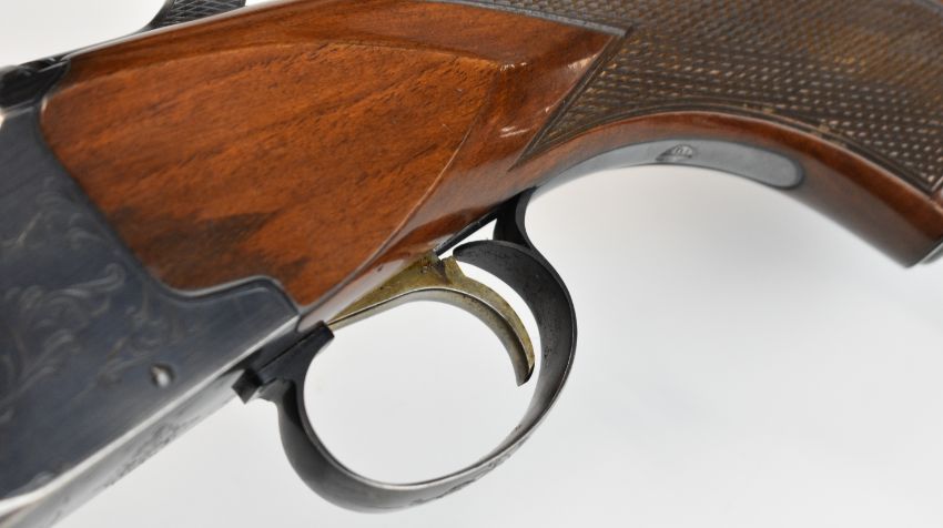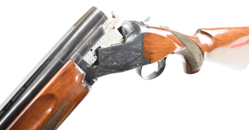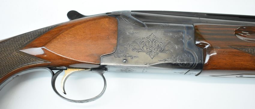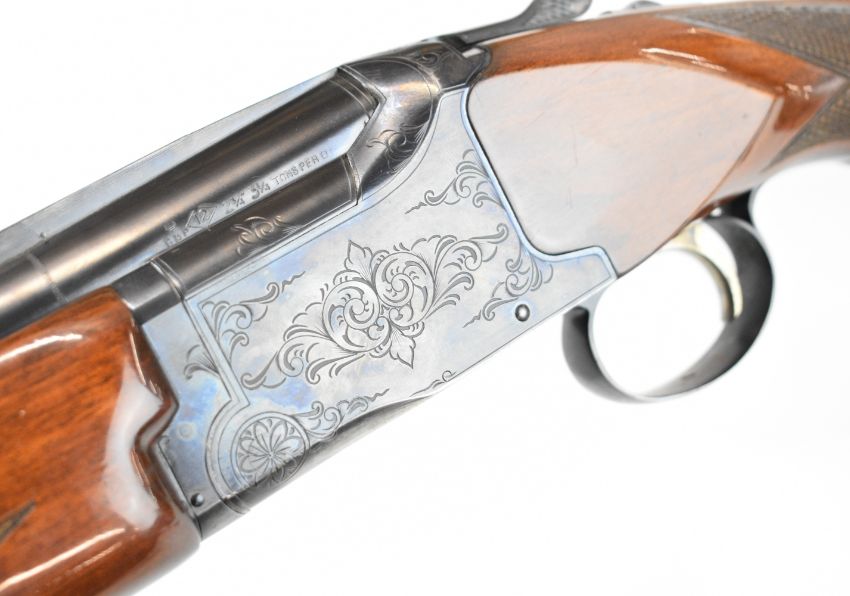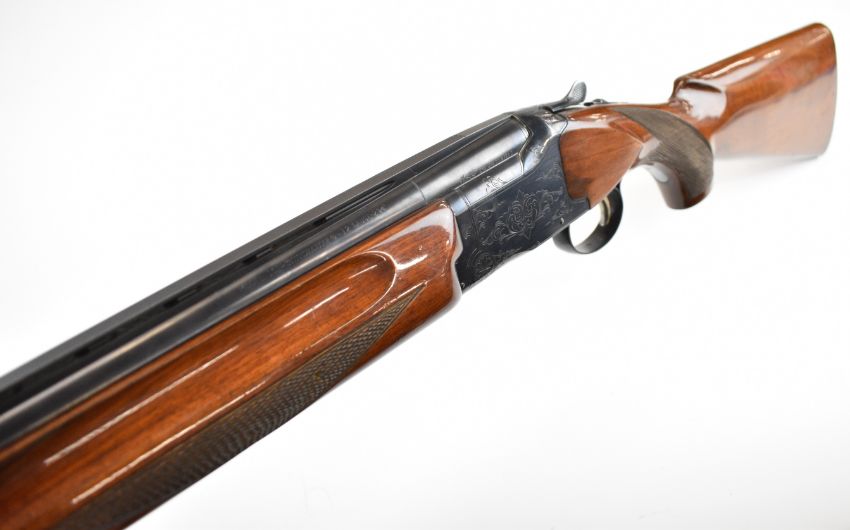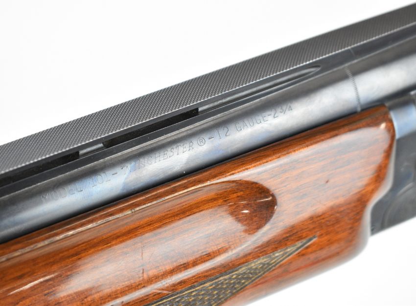 Winchester Select 101 12 bore over and under ejector shotgun with engraved action, underside, trigger guard and thumb lever, chequered semi-pistol grip and forend, single trigger, vented top rib and 27 inch barrels choked cylinder, overall length 111.5cm, length of pull 36cm, serial number K384981. PLEASE NOTE THAT A VALID RELEVANT SHOTGUN CERTIFICATE IS REQUIRED TO VIEW OR PURCHASE THIS LOT AND FOR ALL SHOTGUNS OR RIFLES. PLEASE ENSURE YOU HAVE THE RELEVANT CERTIFICATE BEFORE BIDDING.