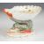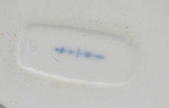 19th/20thC Berlin porcelain salt or bonbon dish with figural supports, shell finial and exotic bird decoration, H6.5cm