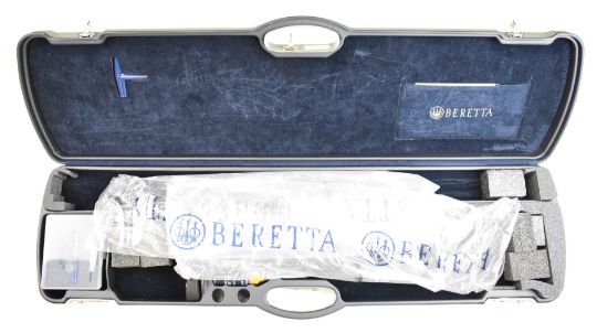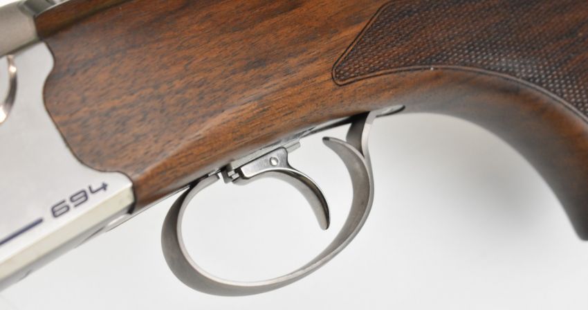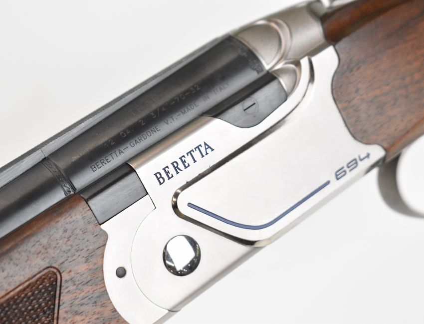 Beretta 694 Trap 12 bore over and under ejector shotgun with named action and underside, chequered semi-pistol grip and forend, adjustable single trigger, vented top and central ribs and 32 inch barrels, overall length 125.5cm, length of pull 37.5cm, serial number ST25435R, unused in original fitted case with spare butt pad, dust bags, accessories, related paperwork and outer box. PLEASE NOTE THAT A VALID RELEVANT SHOTGUN CERTIFICATE IS REQUIRED TO VIEW OR PURCHASE THIS LOT AND FOR ALL SHOTGUNS OR RIFLES PLEASE ENSURE YOU HAVE THE RELEVANT CERTIFICATE BEFORE BIDDING.