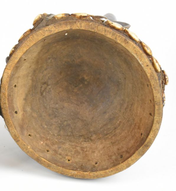African tribal figural fertility headdress, probably Yoruba tribe Nigeria, decorated with cowrie shells, H33cm