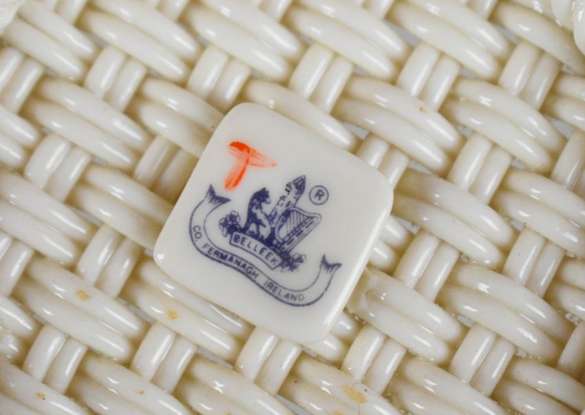 Belleek porcelain basket with applied flower decoration, diameter 22 x height 8cm