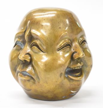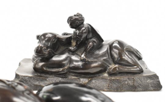 Chinese collectibles to include four faced bronze bust of Buddha, boy riding a buffalo, carved bean pod vessel, hippo and lion, tallest 22cm