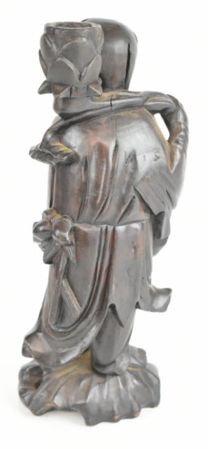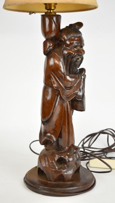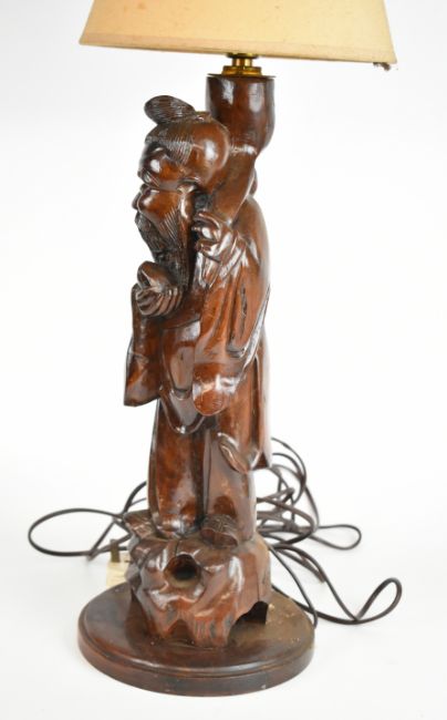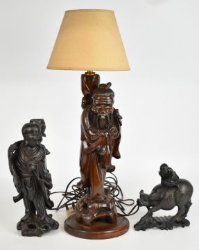 Three Chinese carved figures including boy on a buffalo, tallest 47cm