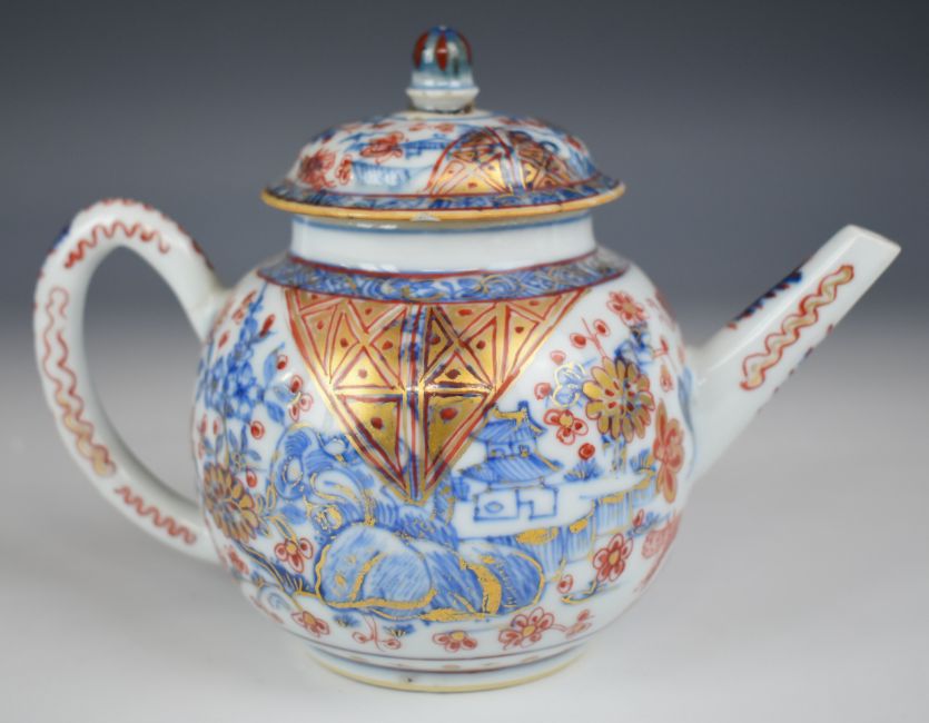 19thC Chinese teapot and cover with Imari decoration, H13cm