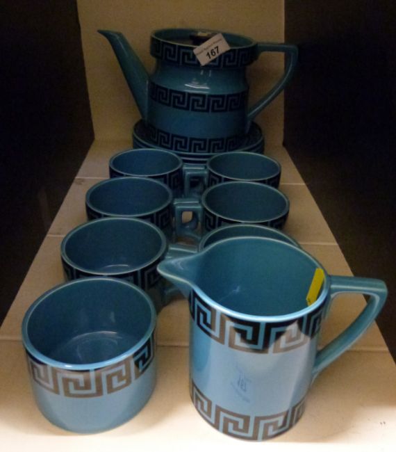 A Portmeirion Susan Williams-Ellis "Greek Key" teaset in turquoise colourway