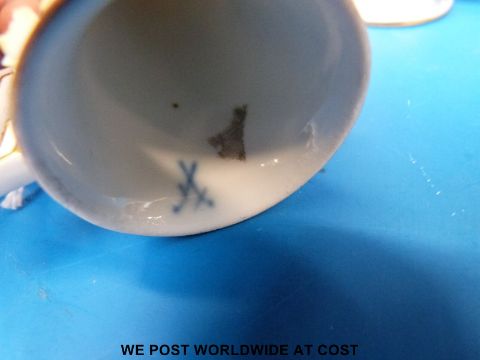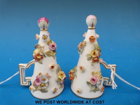 A pair of 19thC Meissen candle snuffers with applied flower decoration
