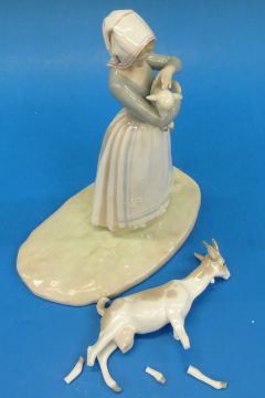 A Lladro figurine, Shepherdess with Goats 1001.
