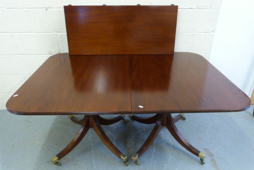 A mahogany twin pedestal dining table with two leaves (maximum length 247cm, minimum length 154cm, width 107cm, height 72cm)
